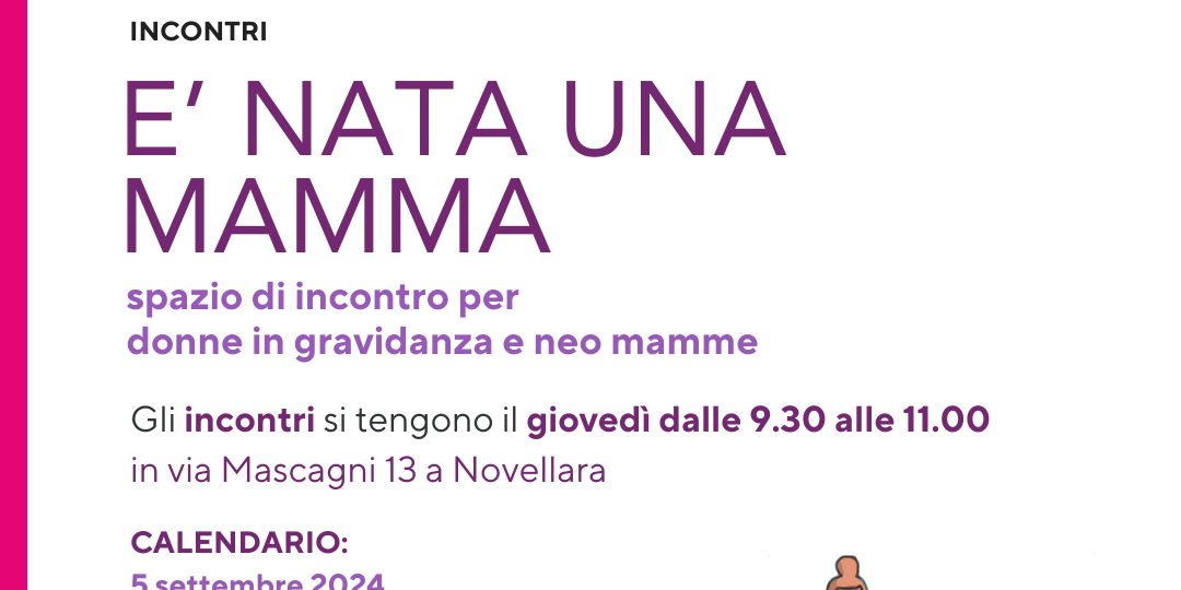 E’ NATA UNA MAMMA. Uno spazio di incontro dove potersi raccontare, confrontarsi e ascoltare in un clima sereno e accogliente; gli incontri sono aperti a mamme insieme ai loro bambin* ma anche per mamme in attesa.