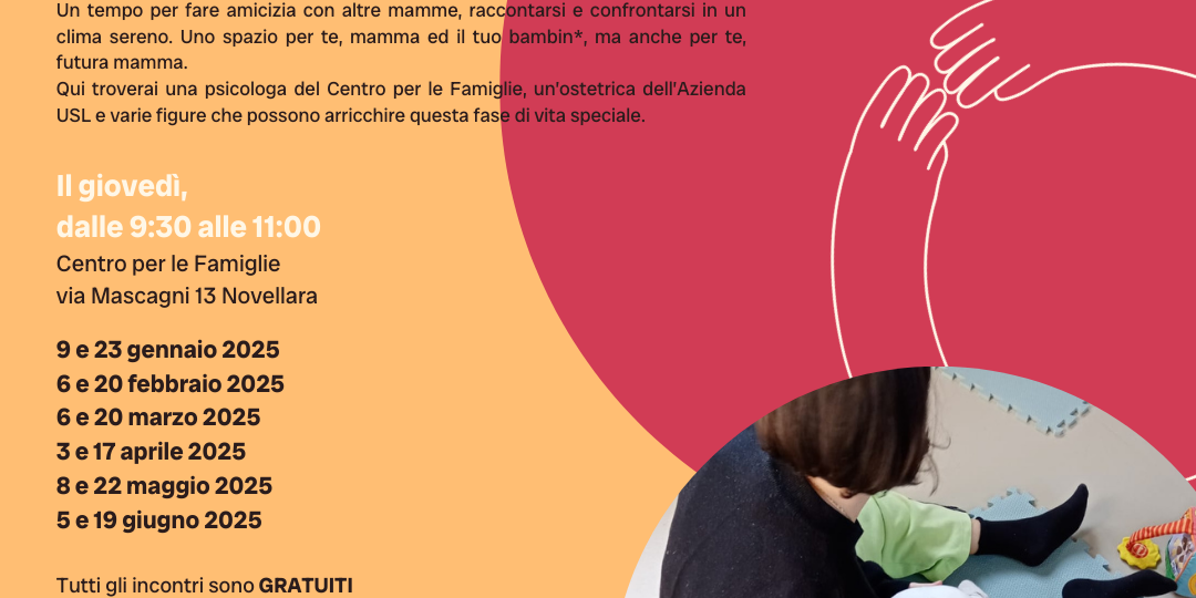 Un tempo per fare amicizia con altre mamme, raccontarsi e confrontarsi in un clima sereno. Uno spazio per te, mamma ed il tuo bambin*, ma anche per te, futura mamma.